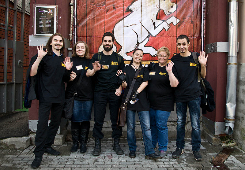 Он недолго был в нашей комнатке, Гагрид) Мы потом увели его на улицу фотографироваться,после Мордирит посидел в Агларонде и у стойки - костюм был очень большим и перемещаться было трудно) Ближе к концу мероприятия перевоплотился в менее приметный облик и ушел уже после лотереи)