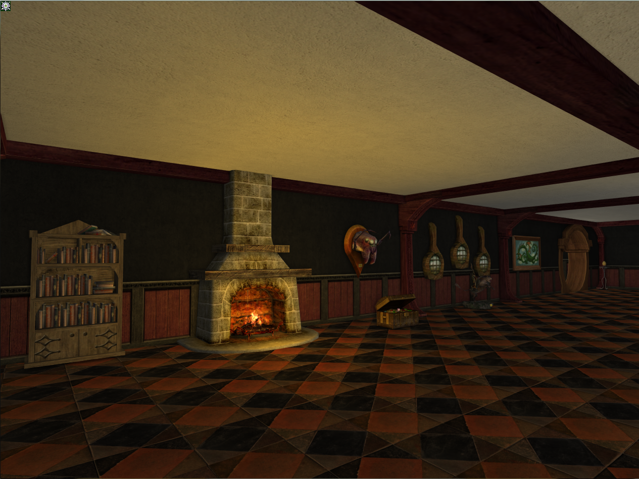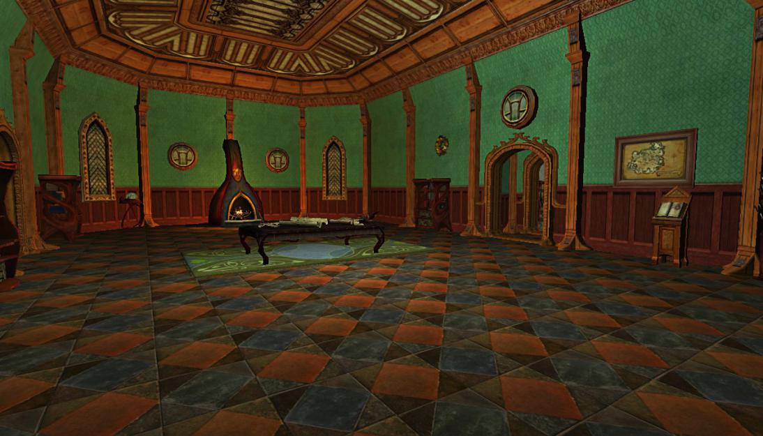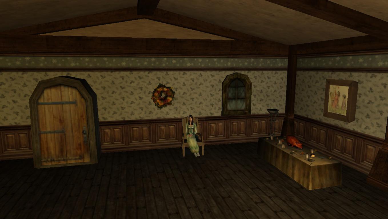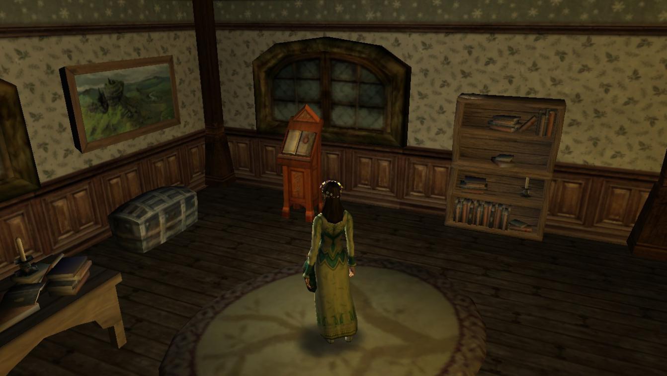 Вот моя гостинная. На этой картине изысканная картина дракона, стол с колбасками и крендельками, чтобы можно было самому перекусить и гостей угостить, а также карта Ривенделла(вообще люблю карты).
