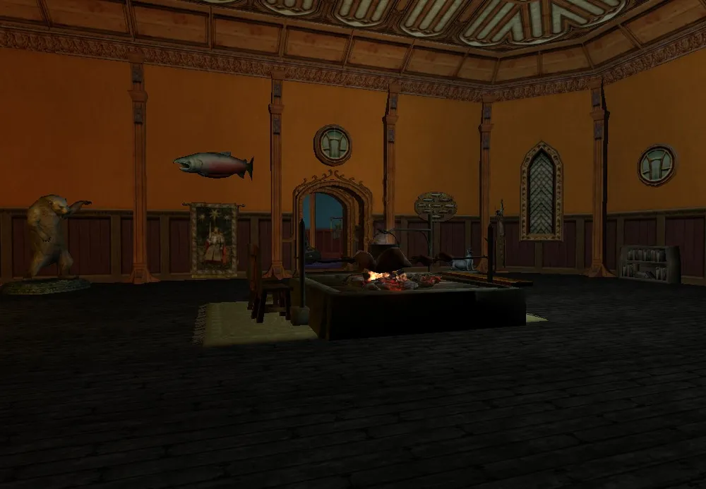В зале установлен большой очаг, что бы все смогли сесть вокруг него во время трапезы.