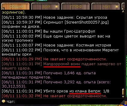 - В информационных сообщениях должен использоваться формат цифр ": N/M", а не " (N/M)". Т.е. следует изменить "Убито боевых троллей (N/6)" на "Убито боевых троллей: N/6".