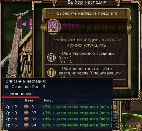 4. Легендарная уздечка менестреля. Наследие " 1% к уклонению всадника (легк.)".