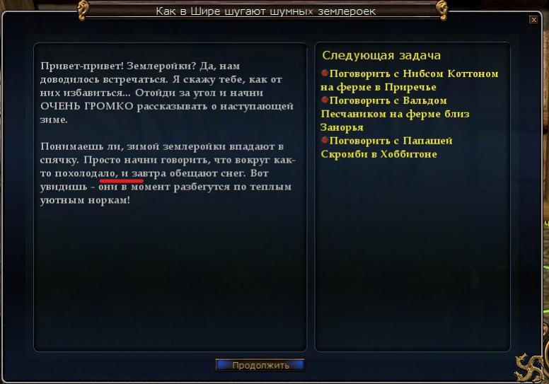- Неточность в цели задания - "Прочитать приказы погонщика троллей". Лучше "прочитать" изменить на "Добыть", чтобы лучше соответствовало начальному диалогу. И чтобы не было двух целей подряд на "прочитать".