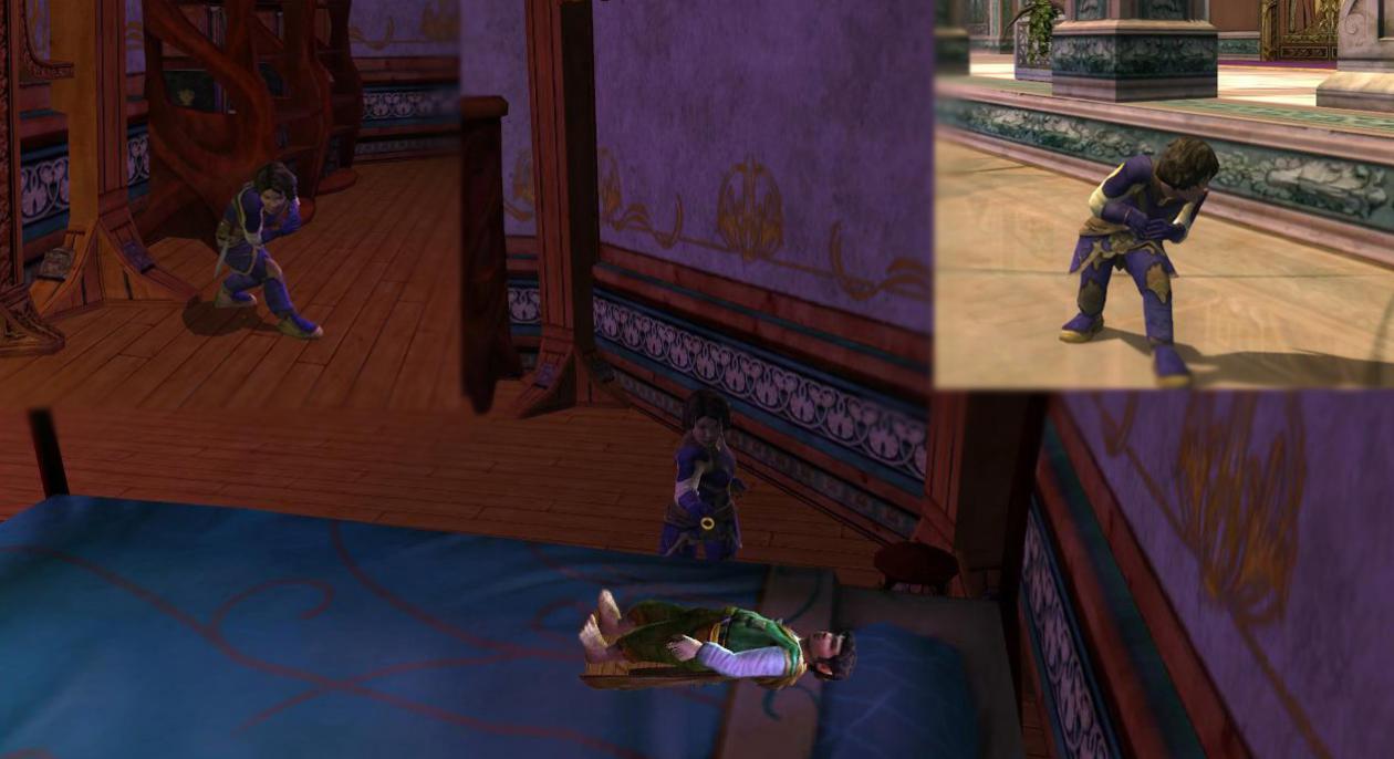 Зайдя в гостевую комнату, друзья были просто поражены увиденным: перед ними стояла высокая рыжеволосая девушка-страж в сияющих доспехах. Девушка представилась, как Эолодивин из Рохана, а ее спутница Турмалириэлью, хранителем рун из Лихолесья.