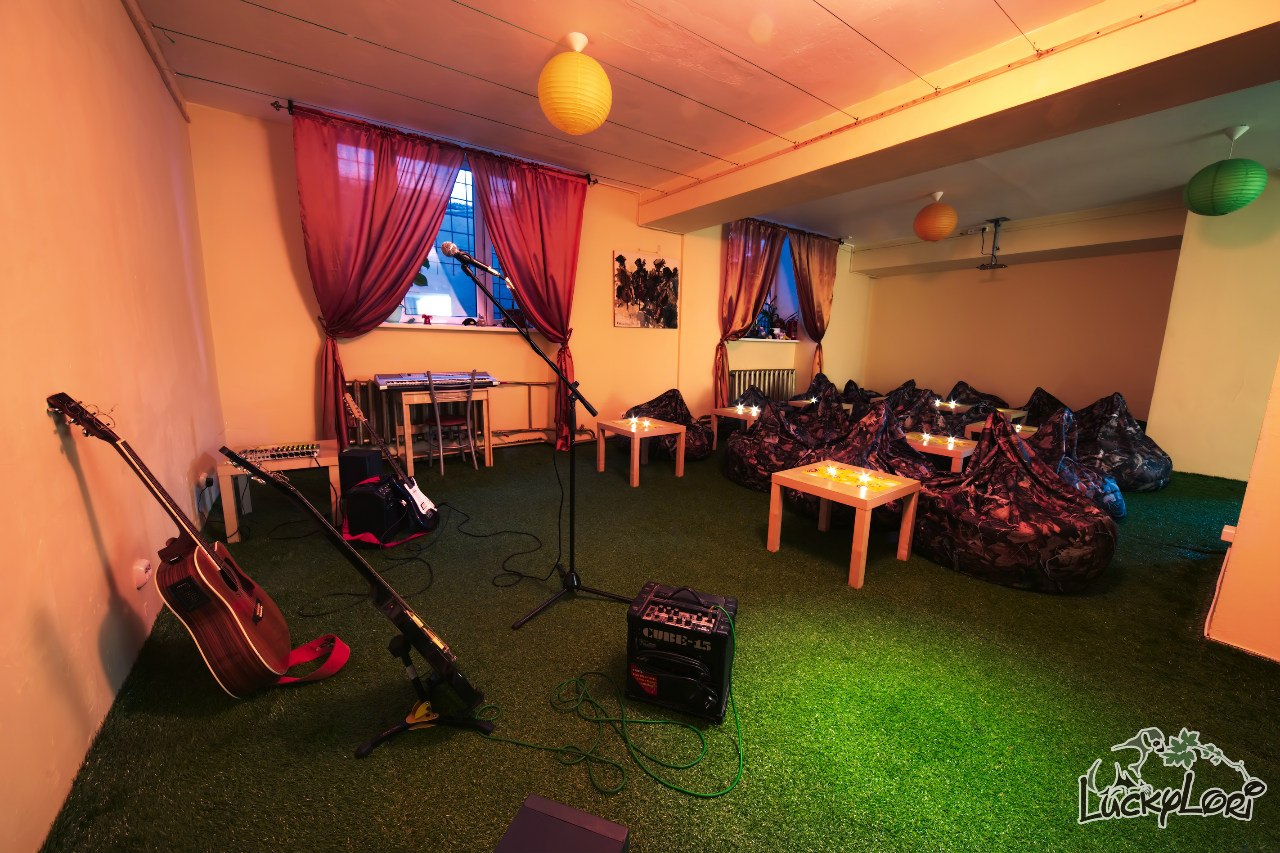 алкоголь там нельзя, правда, зато там уютно и на крайняк (если будет оч скучно) там всегда есть книги, кино, гитары, всякие приставки игровые, настольные игры..
