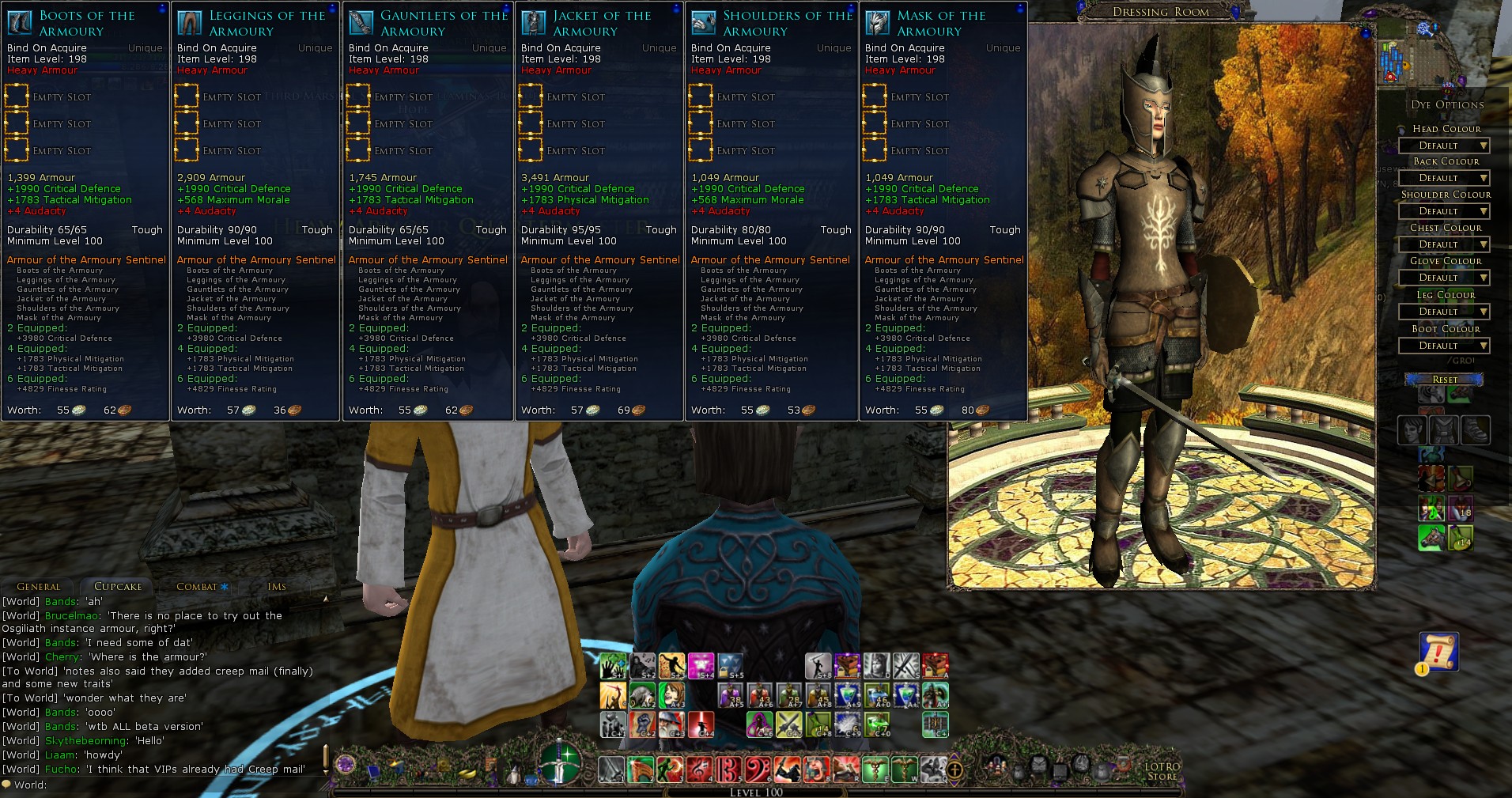 As for Cosmetic Weapons they work the same as cosmetic armor. You will have three new slots on your wardrobe for putting in any weapon or shield that you own. There will be some compatibility issues with certain items, but you will get a tool tip on the wardrobe for that slot telling you why they are not compatible and the visuals will default to the equipped weapon. There will be some bugs as we roll this out the first time as there are thousands of potential combos, but we are really happy to have it where it is and hope to expand upon it in coming updates.
