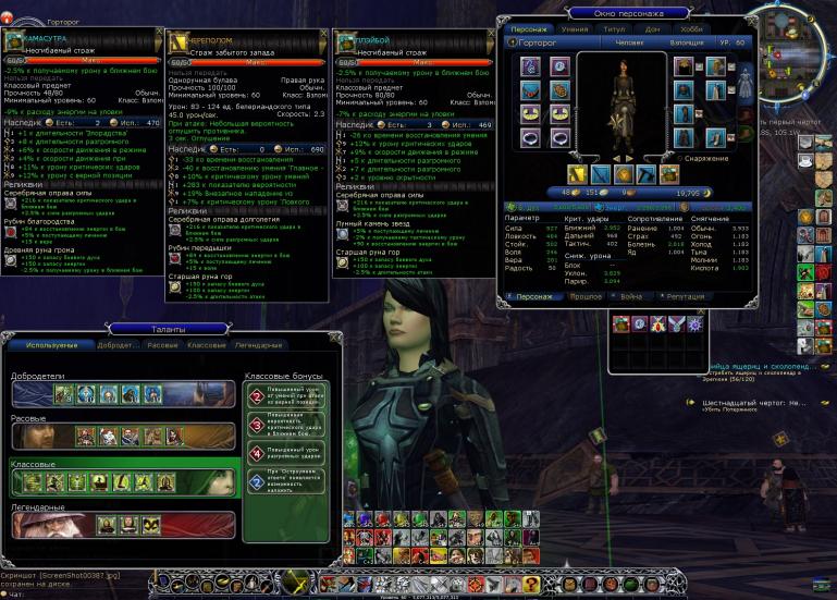 Жаль, что на скрине не видно количества духа и маны - сильно размыто в той области. По моим подсчетам должно быть порядка 5100 бд и 1900 маны (поправьте если ошибаюсь). Статы тоже размыты, но там цифры проглядываются - сила похожа на 377, ловкость явно 464, стойка 562? Уклонения имхо тоже маловато, у меня за 4к.