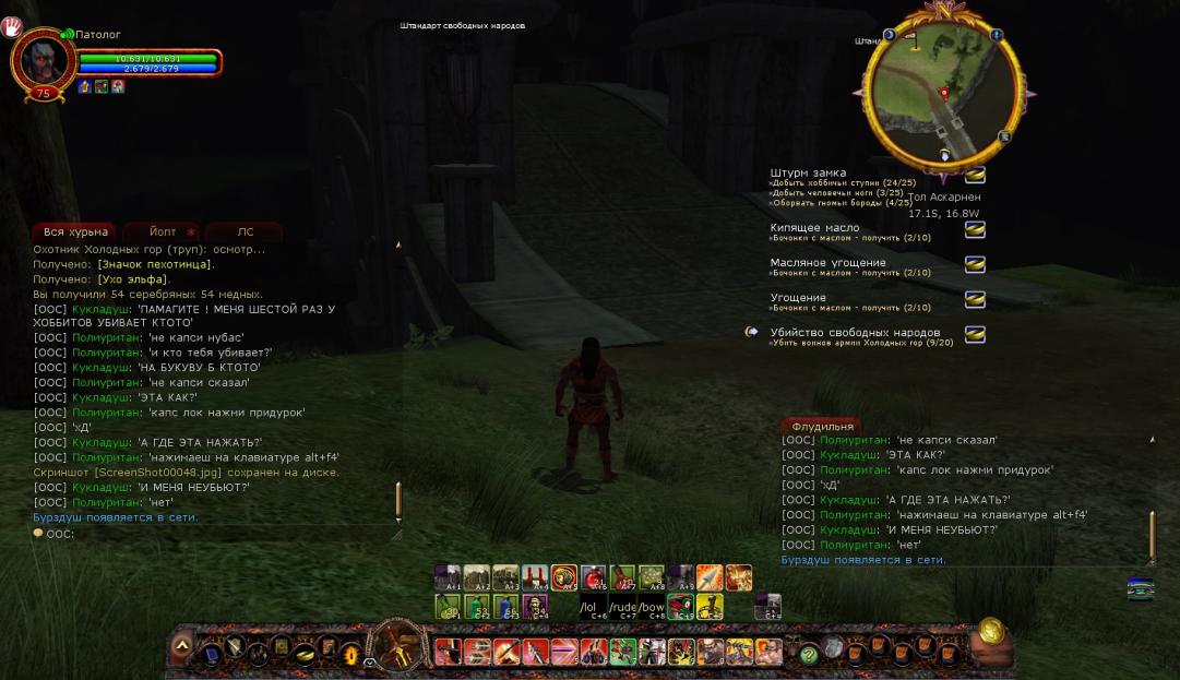 Что же ты позавчера у хоббитов убежал от меня? Встретились мы посреди реки, неписи на тебе не было, тапки у меня были в откате, ты замедло кинул, уклонку врубил и к заставе крипской убежал, откуда улетел картой.