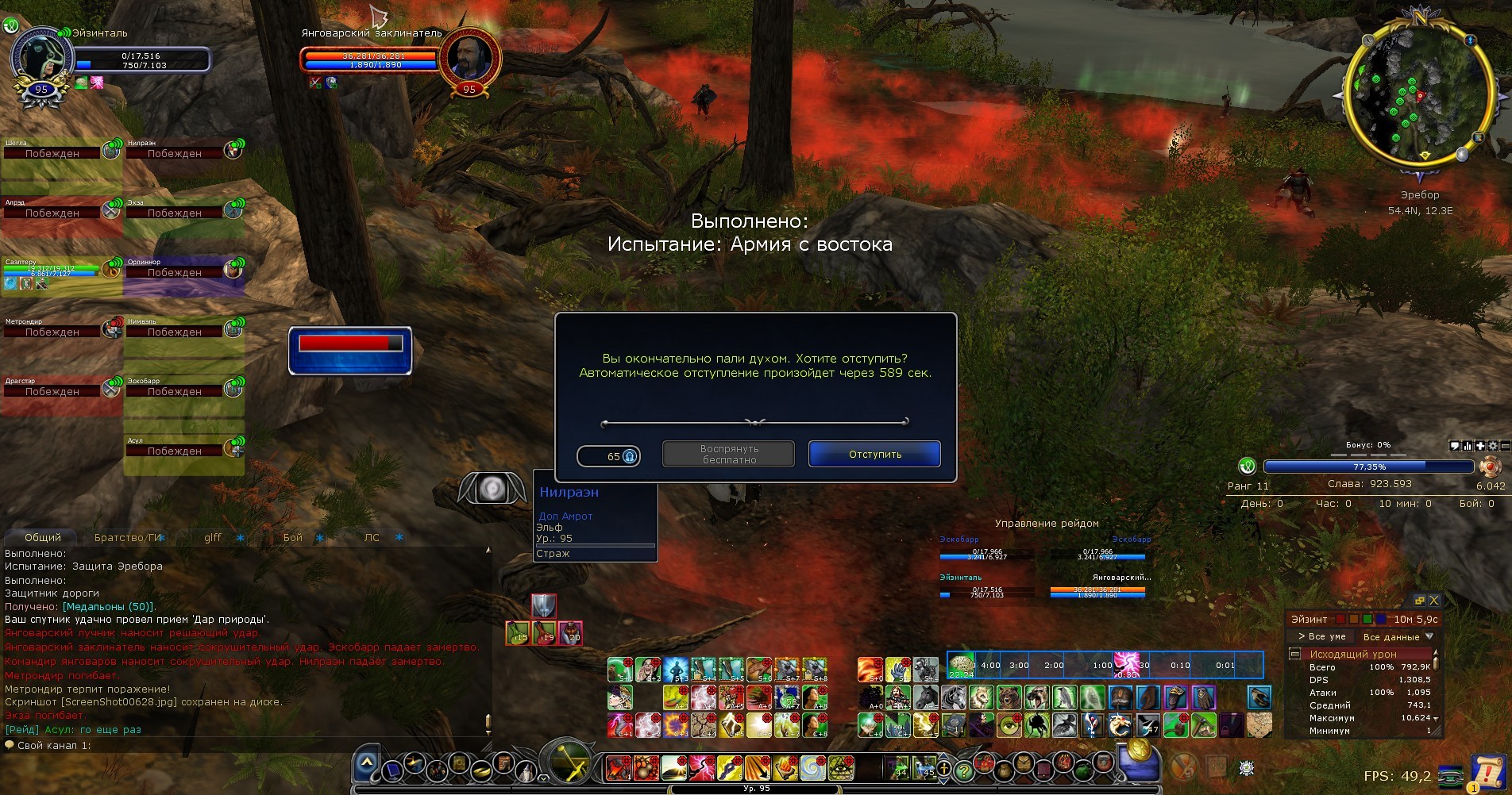 Если присмотреться и прочитать лог боя, то во время выполнения испытания были живы еще страж, хм и хр  А так да, форностовские игроки настолько суровы, что рандомный пикап игроков из 11 разных содружеств отхиливает 1 менестрель