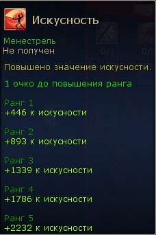 Тактическое мастерство – ещё одна важнейшая для менестреля характеристика, которая влияет на тактический урон и эффективность исцеляющих умений. Не входит в категорию основных параметров, но прямо указывается в качестве прибавляемого некоторой экипировкой бонуса.