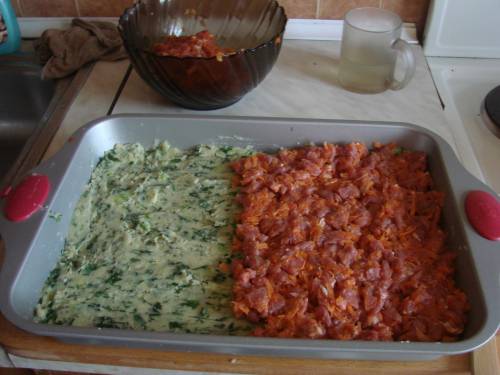 и ставим в, предварительно разогретую до 200 градусов, духовку, где и оставляем на 30 минут. Затем достаем форму, освобождаем от фольги, и возвращаем в духовку на 40-60 минут ( в зависимости от количества влаги в запеканке), в температуру 175 градусов.