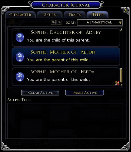 Персонаж может усыновить до двух детей. Когда эти дети заводят своих детей, появляются новые поколения (номер поколения отпрыска всегда на единицу выше номера поколения предка). Эта система также дает соответствующим игрокам прозвания «Сын...», «Отец...», «Дочь...» или «Мать...». Фамилии и нотариусы Нотариус — компьютерный персонаж, который предоставляет две ценные услуги. Первая из них — это регистрация фамилий. Получив 15-ый уровень, вы можете выбрать для себя фамилию. Каждый член семьи может обратиться к нотариусу и добавить к имени фамилию семьи, или же взять другую фамилию (например, свойственники).