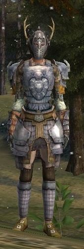 Персонаж женский, но ассоциации проследить можно Доспехи - Т7 крафт, кузнец, из наплечников шерстистых таких только лёгкие-средние Т7 (портной) можно найти, но там такая себе лапка, да и в белый они плохо красятся. Перчатки - средний Т7 крафт (портной), сапоги - Даргнакх Т2 или Букот Т1 (Башня Ортханк). Оружие для просто по форме лезвия подбирала
