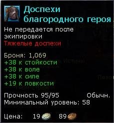 Раз ужь темку апнули, то спрошу)) А смысл в этих доспехах есть? Параметр радость-то отсутствует, а без него я так понимаю в инстах делать нечего. Сам я портной, и на своего защитника сшил на 58ой комплект брони, думаю что последний, хотя могу и эльфийские, но смысла не вижу.