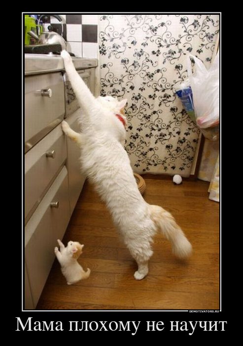 У нас, кстати, был один раз прикольный пример кооперации. Привезли кошек к родителям, у них еще собака той-терьер. Папа из коридора наблюдает картину: одна кошка скидывает со стола куски буженины на пол, вторая оттаскивает их подальше, а собака стоит на стреме в коридоре.