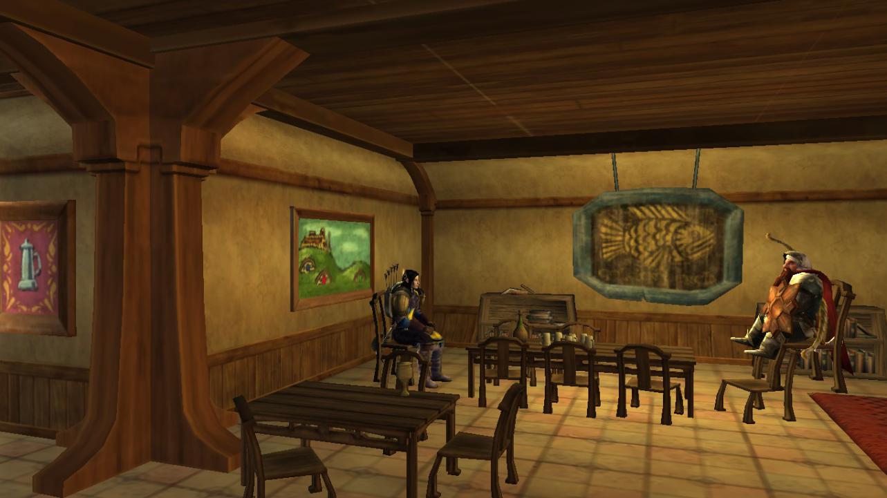 Очнувшись я уставился в потолок.Я не чувствовал ничего и также думал о рассвете.Я потерял счет времени и даже не смел гадать,что же сейчас там,наверху.Хотя бы на поверхности могильников,где проходу не дают баргесты и скелеты.Ведь даже там сквозь вечный туман пробивается свет.Я начал чувствовать нестерпимую боль в левом боку и плече.Я вспомнил где я.Я в Хауд Ярхит,одном из захоронений в могильниках,куда сунулся чтобы убить курганных духов.Где свет исходит только от горящих по непонятным причинам факелов и могильных свеч.Я повернул голову,но очень быстро понял,что шевелиться мне сейчас не стоит.Шея хрустнула,пустив волну острой боли,которую даже кривые гоблинские стрелы измазанные ядом не причиняют.Оставив голову в таком положении я увидел костер и троих сидящих около него людей.Рядом,глядя в стену,был дух.Он,почему - то не атаковал,а просто стоял.На спине у одного висел хорошо сделанный лук,на поясе меч и чертовски хороший кинжал.Я бы мог предположить,что это все копии оружия первой эпохи,но не стал спешить с выводами.Так же,на поясе у него была закреплена книга.Одет он был в следопытский капюшон с плащом и ничем не примечательный кожаный костюм.Двое сидевших рядом меня поразили не менее.Один,молодой рыцарь,одетый полностью в доспехи.Рядом с ним,из "земли" торчало знамя.Я даже не представляю как он его туда воткнул.Второй,хранитель мудрости,это стало очевидно,когда я увидел лежащий рядом с ним посох.Он точно был первой эпохи.Такой работы я видел посохи только на аукционе.Но животного рядом с ним не было.Он сидел с широко раскрытыми глазами,глядя так же в стену и оживленно жестикулируя.Взгляд же у рыцаря я едва разглядел из-за шлема,но он был испуган.Он постоянно оглядывался,всматривался куда-то и с опаской поглядывал на "широкоглядещего".Взгляд же у охотника(я думаю,что он был охотником и лук у него таки первой эпохи(как и кинжал))был уставшим,глядящим в никуда.Заметив,что я очнулся,охотник подошел ко мне.Не глядя мне в глаза он начал разговор.