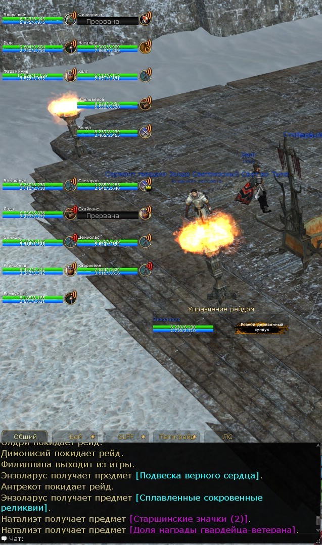 Дааа... Это я конечно страшно тупанул. Впервые сталкиваюсь с ситуацией, когда РЛ вылетает при раздаче лута и его никто не может распределять, оказалось могу видеть содержимое сундука попробовал взять вещь - забралась. Честно, не специально, вину не отрицаю, лажанул (20 часов не спал из них 14 за рулем), если решите ЧС -значит ЧС к сожалению передать эту шею уже никому нельзя было и положить ее обратно тоже. Сундук я не использовал по откату. Когда сказали открыть тем у кого нет сейва несколько раз пробовал открыть, но он был не активен или его нельзя было использовать. Затем использовал уже когда началась неразбериха с лидерством, через 1-2 минуты один раз, который позволил увидеть содержимое.